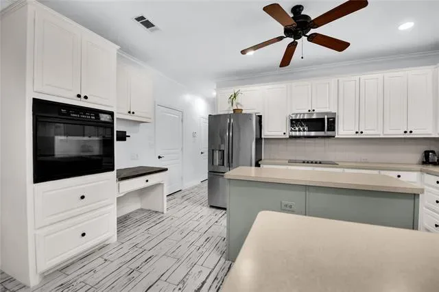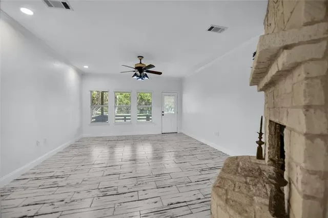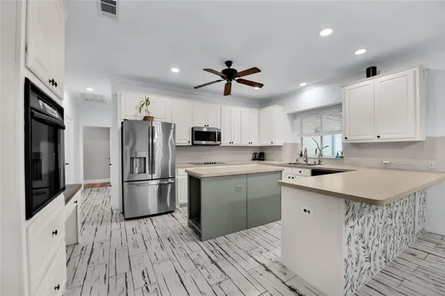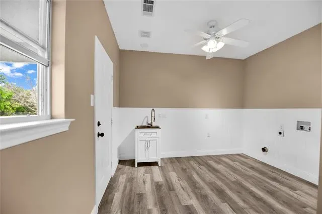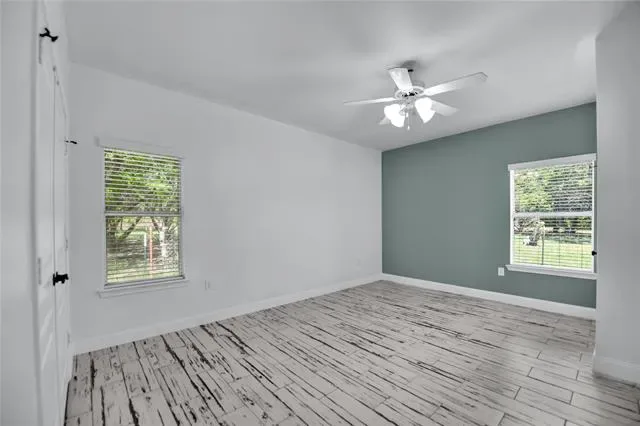 Designed for everyday convenience, the home offers abundant closet storage, a large utility room with a dog door leading to the backyard, and two washer and dryer hookups—one in the utility room and another in the oversized garage.
