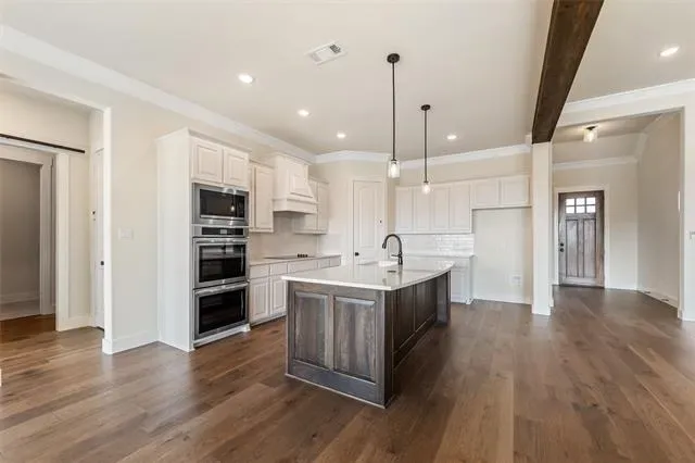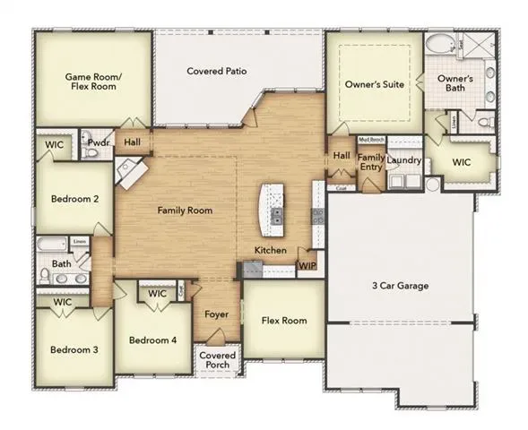 Estimated November 2025 completion! Ask us about our Trade In Trade Up program, we can buy your home! Approach the grandeur of the home through a covered porch, setting the stage for the elegance that lies within. Enter through the foyer, to the right, a versatile flex room awaits which is perfect for a cozy home office or creative space. To the left of the foyer, discover three traditional bedrooms, each accompanied by its own walk in closet and a shared full bath providing comfort and privacy for family or guests. The journey continues into the heart of the home, revealing a sprawling family room and a designer kitchen with a large island, which is an entertainer''s dream. For added convenience, a game room, flex room is tucked away in the back left. On the opposite side of this ranch style home, the owner''s suite beckons with a spa-like bathroom and an expansive closet, creating a private retreat that you’ll never want to leave. Next to the three car garage, a mud bench and laundry room enhance practicality, while a sizable covered back patio invites outdoor living and relaxation