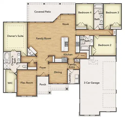 Estimated June 2026 completion! Ask us about our Trade In Trade Up program, we can buy your home! The 4-bedroom Colorado 3 presents a creative yet sensible layout of the home’s 2,483 square feet of living space. Right from the front entrance, you can see the entire main living area. This open concept enhances the spacious feeling and makes it easy to have conversations no matter where you are—perfect for entertaining! The kitchen is a definite eye-catcher in the Colorado 3. Just a few steps from the kitchen, this floor plan has just the room for those special occasions. If formal isn’t your thing, use this as a playroom or a living room. Across the foyer, the Colorado 3 also gives you a flex room to expand on the versatility. With a few small adjustments, you could convert it to a fifth bedroom. The design of the owner''s suite is one of the (many) reasons people love this floor plan. The bedroom is nestled in the back of the home under a tray ceiling that accentuates the roominess. The Colorado 3 smartly uses space in the bathroom for both a soaking tub and step-in shower, along with dual vanities and a private water closet. Then your suite is completed with an expansive walk-in closet with wooden shelves and racks ready and waiting for your wardrobe. The 3 secondary bedrooms are clustered in a suite-like space on the other side of the home’s layout. Two of them offer a walk-in closet, while the third one gives just a little bit more floor space. For a home that creates the ideal balance between togetherness and privacy, the Colorado 3 is fit to be tried! Stunning homesite located hilltop on an acre in a serene, quiet community. Beautiful interior that features natural light for that farmhouse warmth. Feel right at home in your charming, inviting home with enough room to host. This homesite boasts, a spacious yard and large covered patio to enjoy the scenery. MASONRY FIREPLACE, COVERED PATIO, FULL FOAM INSULATION, ENERGY STAR CERTIFIED BUILDER!