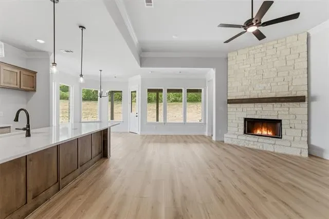 Estimated April 2026 completion! Ask us about our Trade In Trade Up program, we can buy your home! Step into the Bluebonnet by Riverside Homebuilders and embrace a lifestyle of comfort and functionality. With 4 bedrooms and 3 bathrooms sprawled over 2,686 square feet, this single-story haven offers ample space for every member of the family. As you enter through the inviting porch, the airy foyer sets the tone for the home''s open layout. To the left, a flex room awaits, beckoning to be transformed into your ideal space—whether you envision a home office, gym or hobby room. Continue through the foyer to discover the heart of the home—a luminous dining room bathed in natural light. Beyond lies the main living area, a seamless fusion of the expansive kitchen, cozy family room featuring a fireplace and a charming nook adorned with picturesque windows. On the right wing of the home, privacy awaits with three traditional bedrooms and a breathtaking owner''s suite. The owner''s retreat boasts a spacious walk-in closet and a spa-like bathroom, offering a sanctuary for relaxation. Convenience is paramount with the laundry situated just off the bedrooms, accompanied by a mud bench near the garage entrance. To embrace the beautiful DFW weather without having to leave your home, step outside to the generous covered patio—where endless possibilities for outdoor enjoyment await. With its thoughtful design and inviting atmosphere, the Bluebonnet embodies the epitome of charming Texas living for all families alike.Located on a homesite over 1 acres, this home includes split secondary bedrooms, an open concept, with a formal dining room. Includes a walkthrough laundry, and an additional study-flex room! SPRAY FOAM ENCAPSULATED!