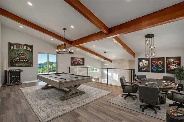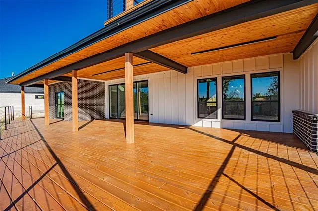 Spectacular contemporary situated on three beautiful acres in a gated community. Designed with both luxury and functionality in mind this stunning home offers an exceptional layout for entertaining while embracing the beauty of the surrounding landscape. The grand kitchen features extensive cabinetry, granite countertops, stainless steel appliances, and an oversized breakfast bar that opens seamlessly into the expansive great room. The living area showcases vaulted ceilings, modern lighting, and a dramatic floor-to-ceiling stone fireplace, creating a warm yet sophisticated atmosphere. Large windows and easy access to the expansive wood porch allow indoor and outdoor spaces to blend effortless perfect for enjoying breathtaking western sunset views. The spacious primary suite offers a private retreat with a custom walk-in closet with built-in shelving and shoe storage. The split-bedroom floor plan provides privacy, with two secondary bedrooms connected by a Jack-and-Jill bathroom with a large walk-in shower, while the fourth bedroom features its own private bath. All bathrooms include granite countertops, custom lighting, and designer mirrors. Additional highlights include a conveniently located half bath for guests, a huge walk-in pantry with abundant storage, and an oversized utility room complete with built in cabinetry, folding counter, and space for an additional freezer. The oversized three car garage includes openers and plenty of room for storage. A dedicated office space near the front entry offers flexibility and could easily serve as a fifth bedroom. Upstairs, the game room provides the perfect space for entertainment and features a private balcony overlooking the beautifully landscaped property, private hiking trails, and the unforgettable sunsets that make Parker County so special. This incredible property offers your own private paradise and is priced below appraisal, presenting a rare opportunity to own acreage in one of the area’s premier communities.