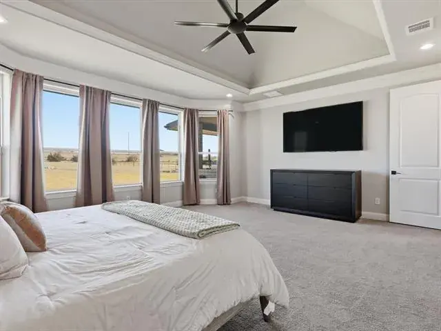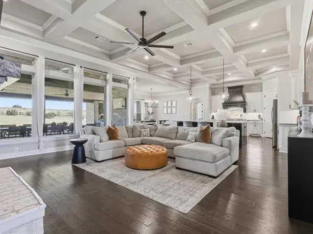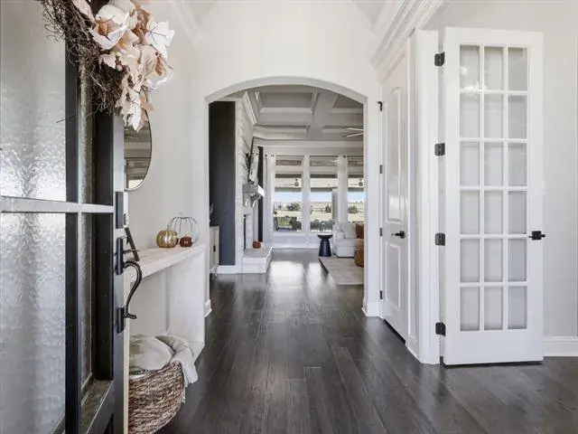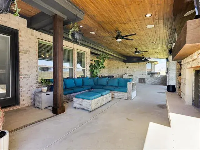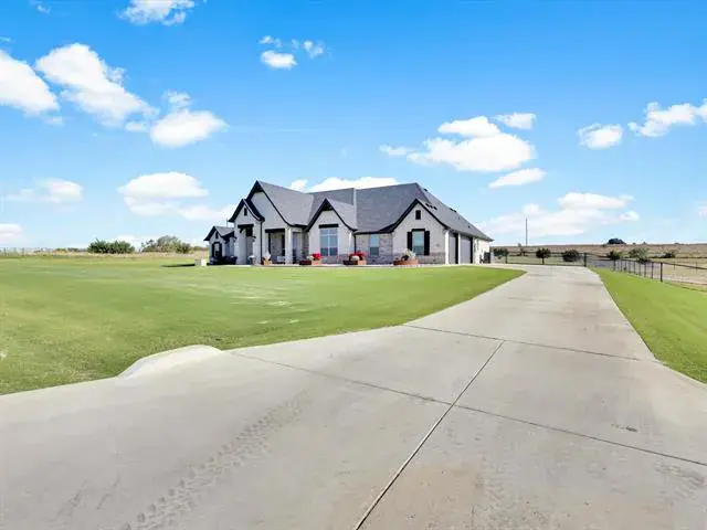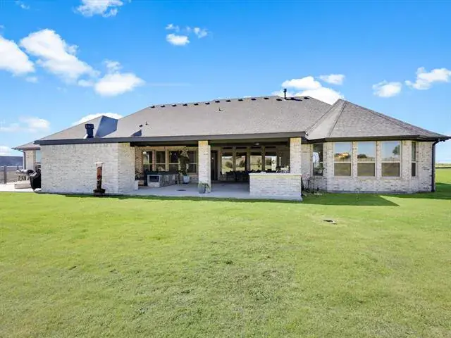 Set on over 2 pristine acres in the desirable Eagles Bluff, this elegant home offers refined country living within the highly acclaimed Brock ISD. With 4 bedrooms plus a 5th flex room currently used as an office, 3 full bathrooms, and a half bath, this thoughtfully designed home blends sophistication with everyday comfort. The open concept layout highlights two spacious living areas and a chef’s kitchen featuring quartz countertops, dual islands, a gas cooktop, and double ovens, perfect for entertaining or gatherings. A mud area off the 3 car garage adds function and convenience to daily life. The primary suite is a true retreat, complete with a spa inspired shower, soaking tub, and expansive walk in closets. Step outside to the oversized covered patio, where a cedar ceiling, outdoor kitchen and wood burning fireplace create the ultimate setting for relaxing and creating special memories. Located just a short commute to restaurants and shopping, this stunning property perfectly combines luxury, comfort, and country charm, a true gem.