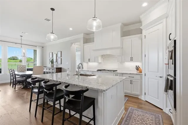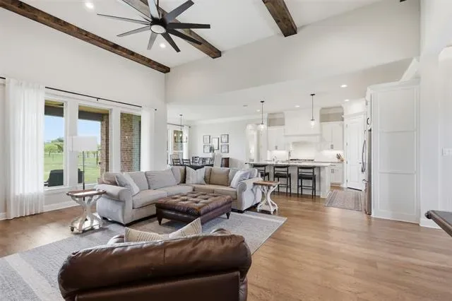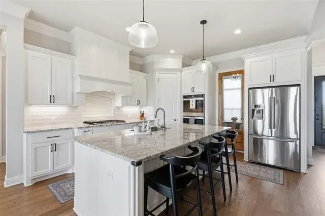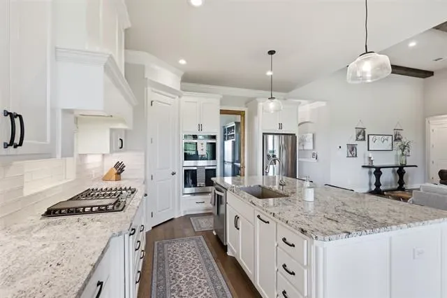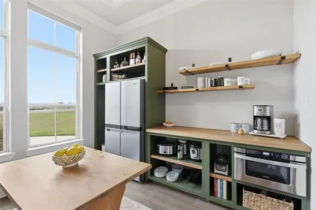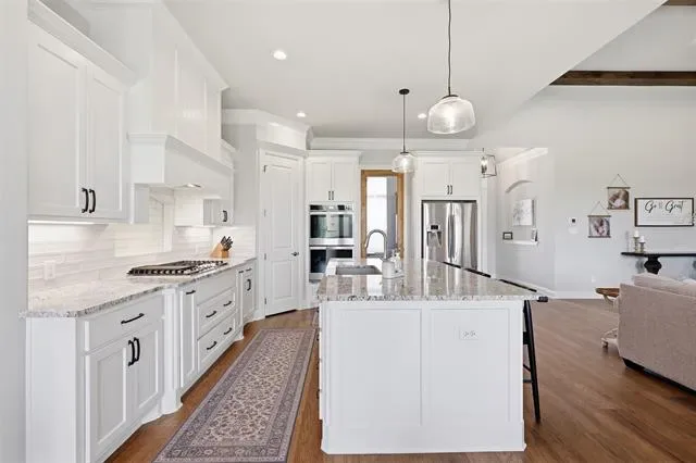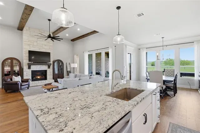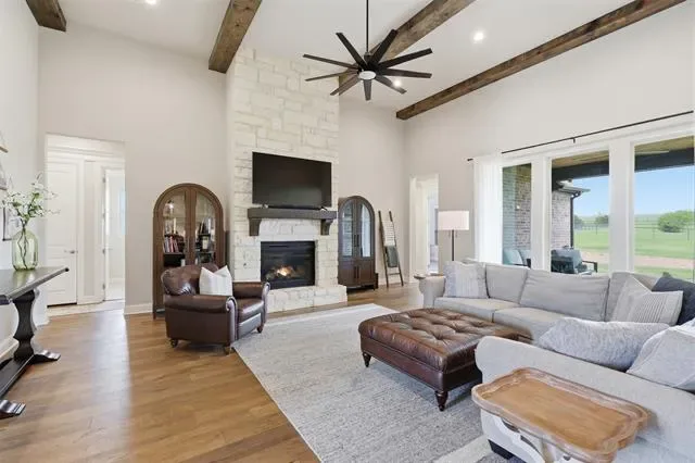 This thoughtfully designed 4-bedroom home offers flexibility for the way you live, featuring a spacious bonus room that can easily serve as a media room, second living area, home office, or playroom. The open-concept layout is warm and inviting, centered around a cozy gas fireplace and a well-appointed kitchen complete with a gas cooktop and a stunning butler’s pantry straight out of a magazine—perfect for hosting, prepping, and keeping everything organized behind the scenes. You’ll find an abundance of storage throughout the home, making it as practical as it is beautiful. Additional upgrades like a water softener system add comfort to daily living, while the built-in tornado shelter located inside the three-car garage provides an added layer of safety and peace of mind. Step outside and the property continues to impress. The 24×36 shop with a 10-foot lean-to porch is fully spray-foamed and equipped with heat and AC, making it ideal for hobbies, a workshop, gym space, or storing equipment and toys. The flat, usable acreage gives you room to expand, entertain, or simply enjoy the quiet surroundings and big Texas skies.