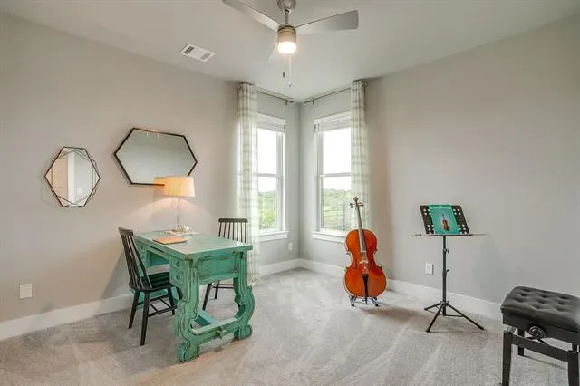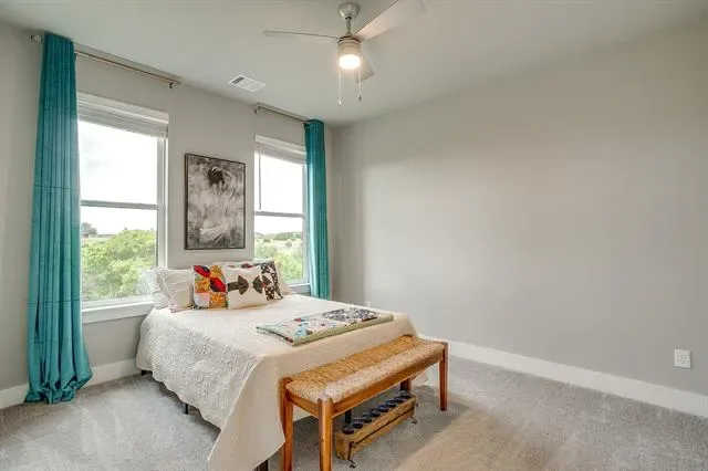 Upstairs, you’ll find two secondary bedrooms, a full bath, and a versatile layout. Step out onto the covered second-floor balcony to take in sweeping greenbelt views and Texas sunsets.