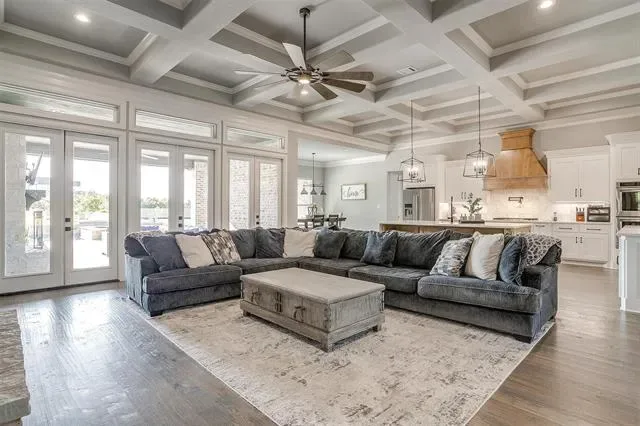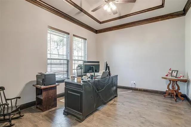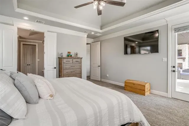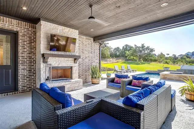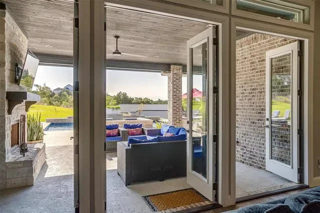 Meet the property that has it ALL! Fully custom COUTO HOME with 1200 SF GUEST HOUSE, 1200 SF SHOP, plus POOL, SPA & OUTDOOR KITCHEN! This fully piped fence property has it’s own private electric gated entrance. Gorgeous, grand elevation and landscaping, hand-scraped hardwood flooring and coffered ceiling throughout living, dining and kitchen. You’ll get to open up the wall-to-wall double glass doors and bring the outdoor living area in! Extraordinary two toned kitchen design with custom cabinetry, walk-in pantry and true farmhouse sink. This home offers so many additional spaces including a formal dining room, office, media room and upstairs flex room that could be used as additional bedroom with full bath. Primary suite is off the dining nook with complete walk-through to bathroom, closet and in front of laundry access! Highly desirable laundry room with safe room and counterspace galore! Favorite feature is the Dutch door for laundry room! This place is jam packed with EVERYTHING that you need. The outdoor living area is cozy with a wood burning fireplace and full outdoor kitchen set up just outside the primary bedroom. Sparkling pool with multiple waterfalls, fire bowls and deluxe spa, all with smart phone capability. Additional living quarters sit at the back of the property with a covered patio overlooking the creek. Fully functional with open living area, bedroom, full bath and bar with sink. The 8 foot glass roll up doors are amazing both open and closed! On the other side of the guest quarters, is a fully insulated 30×40 designated shop with a 10 foot electric roll up door and 14 foot ceilings! This home is unbelievable with the amount of amenities already in place. It is FULLY DECKED OUT. Home still falls under the Builder Warranty. It’s your chance to own a piece of property like this…come out and experience what it’s like to live within the hills of Eagles Bluff!