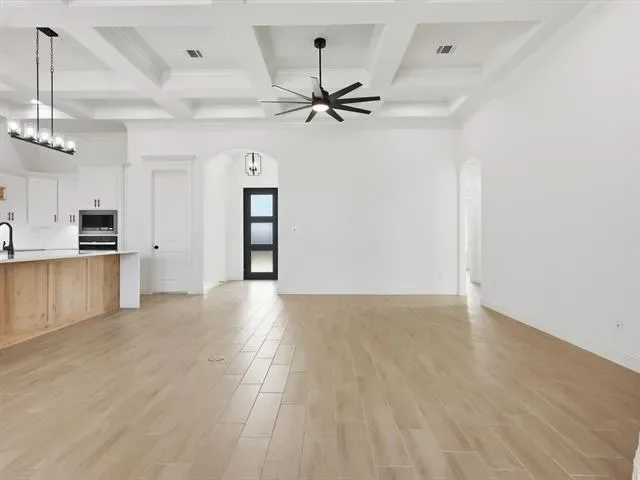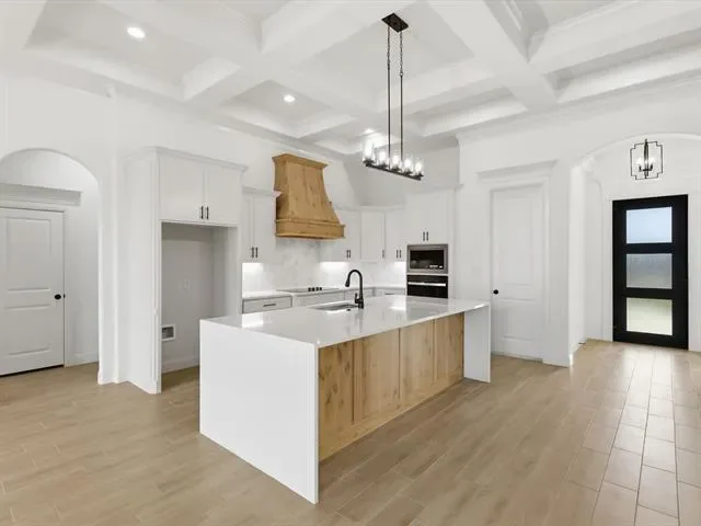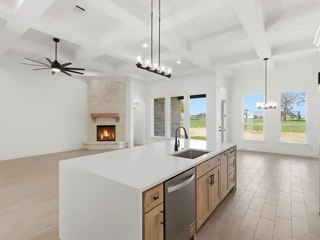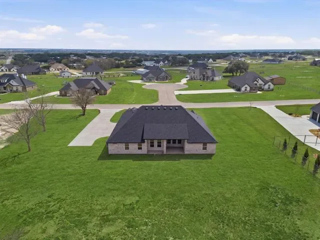 BUILDER INCENTIVE $10,000 CLOSING COSTS! Brand new Al Couto Homes custom-built in Weatherford’s Elevation Estates, offering the space, layout, and upgrades designed for modern Texas living. Situated on a full 1-acre lot, this new construction home features an open-concept floor plan ideal for both entertaining and everyday life. The spacious living room welcomes you with soaring ceilings, coffered ceiling detail, abundant natural light, and a dramatic floor-to-ceiling fireplace. The chef’s kitchen anchors the home with a stunning quartz waterfall island, custom stained cabinetry, quartz countertops, stainless steel appliances, and a large walk-in pantry designed for both function and storage. The private primary suite offers a spa-inspired retreat with a freestanding soaking tub, oversized walk-in shower, dual vanities, and a large walk-in closet with built-in shelving. Secondary bedrooms are generously sized and thoughtfully arranged in a split-bedroom layout for added privacy for family or guests. Additional features include a dedicated home office, spacious laundry room with storage, wood-look tile flooring, crown molding, spray foam insulation, and quality craftsmanship throughout. Step outside to the covered back patio overlooking the expansive backyard, offering endless potential for a pool, shop, outdoor kitchen, or future workshop. Located in one of Weatherford’s growing acreage communities, residents enjoy no HOA, no PID, no MUD, and low property taxes while still being a short drive to shopping, dining, and major highways.