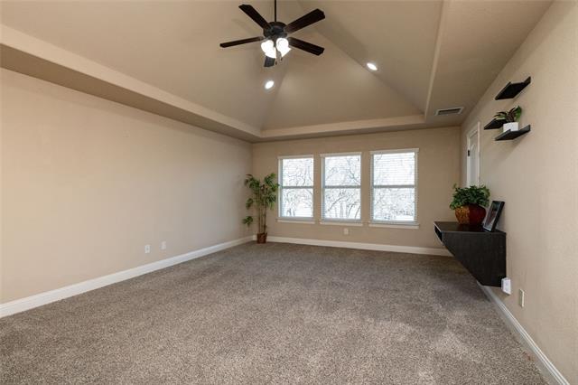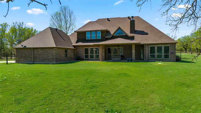 Welcome to Ellis Creek Ranch, an exceptional all custom community outside the city limits of Weatherford, no city tax, no water bill. Every home has it’s own well and this one owner Custom Home, built by Platinum (French & Green) in 2014 sits on a cul de sac in the very back of Phase II. This home will hit all your bells and whistles. This four bedroom, 3.5 bath features authentic handscrapped floors, study or library, dining, breakfast room. Three bedrooms down and one large 17 x 20 bedroom with full bath that could serve as the fourth bedroom or gameroom or media. Plantation shutters, soaring ceiling to second floor, Juliet balcony overlooking the downstairs and a floor to ceiling stone fireplace with an open floorplan and a dream kitchen. It features close to 40 custom cabinets, granite countertops with a great breakfast bar. The breakfast room could accommodate a table for 8 in addition to the dining area which could be a library. The backyard faces east and has a large fenced in area next to one of two community ponds for fishing or just relaxing. Nestled in trees with plenty of privacy from your neighbors. The primary suite has its own wing and the bedroom measures 14 x 19. The ensuite is huge and has over 24 cabinets and drawers, soaking tub and huge shower. The closet is 14 x 6 with lots of built ins. The two secondary bedrooms are in another wing and have a Jack & Jill bath. Upstairs is the fourth bedroom with full bath and closet which also be a game room or media room. The utility room is very spacious with 12 cabinets and measures 22 x 6 with room for a separate gun safe and freezer. A dream kitchen awaits you with over 40 custom cabinets and a pantry measuring 24 square feet. Only 7 minutes from HEB Grocery and Costco and 60 minutes to DFW International Airport and Love Field. You will love the charm of Weatherford, population 39,000 people and 170,000 in Parker County.