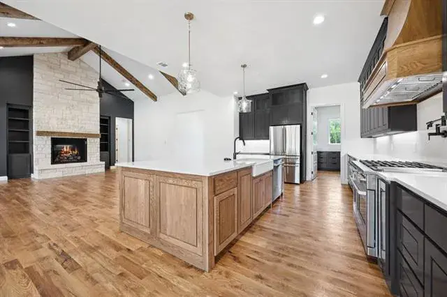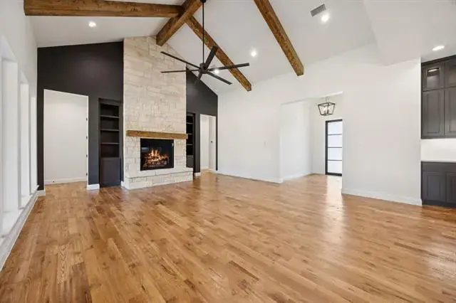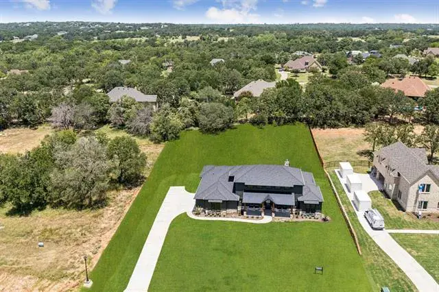Experience refined country living in this newly completed custom estate, perfectly situated behind the gates of the prestigious Estancia at Weatherford. Set on over an acre, this brick and stone showpiece offers timeless architecture, luxurious finishes, and the serenity of wide-open spaces just minutes from Downtown Weatherford and a short drive to Fort Worth. A sweeping Texas-sized front porch welcomes you into a home where every detail has been thoughtfully curated, from the soaring cathedral beamed ceilings and rich hardwood floors to the dramatic stone fireplace flanked by custom built-ins. The chef’s kitchen is both stunning and functional, featuring an oversized island, gas cooktop with pot filler, designer lighting, and a butler’s pantry ideal for entertaining. The private study provides the perfect work-from-home retreat, while the expansive game room, with en-suite bath, wet bar, and patio access, offers the ultimate space for relaxation or hosting guests. The secluded primary suite is a true sanctuary, boasting a spa-inspired bath with a freestanding tub, double-entry shower, dual vanities, and an oversized walk-in closet. Spacious secondary bedrooms, fresh hydro-mulch across the entire property, a well-appointed utility room with custom cabinetry, and a three-car garage featuring sleek epoxy floors complete this thoughtfully designed home. The oversized backyard is a blank canvas ready for your dream pool, outdoor kitchen, or sports court. This is more than a home, it’s a lifestyle of luxury, privacy, and convenience in one of Weatherford’s most sought-after communities.
