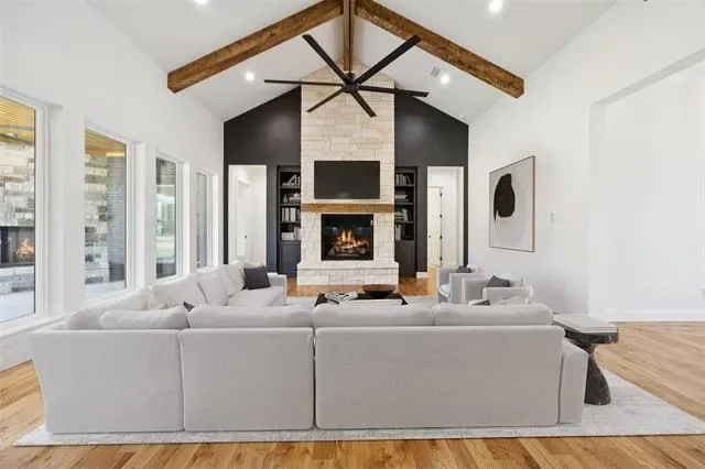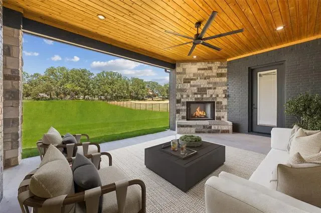 Experience refined country living in this newly completed custom estate, perfectly situated behind the gates of the prestigious Estancia at Weatherford. Set on over an acre, this brick and stone showpiece offers timeless architecture, luxurious finishes, and the serenity of wide-open spaces just minutes from Downtown Weatherford and a short drive to Fort Worth. A sweeping Texas-sized front porch welcomes you into a home where every detail has been thoughtfully curated, from the soaring cathedral beamed ceilings and rich hardwood floors to the dramatic stone fireplace flanked by custom built-ins. The chef’s kitchen is both stunning and functional, featuring an oversized island, gas cooktop with pot filler, designer lighting, and a butler’s pantry ideal for entertaining. The private study provides the perfect work-from-home retreat, while the expansive game room, with en-suite bath, wet bar, and patio access, offers the ultimate space for relaxation or hosting guests. The secluded primary suite is a true sanctuary, boasting a spa-inspired bath with a freestanding tub, double-entry shower, dual vanities, and an oversized walk-in closet. Spacious secondary bedrooms, fresh hydro-mulch across the entire property, a well-appointed utility room with custom cabinetry, and a three-car garage featuring sleek epoxy floors complete this thoughtfully designed home. The oversized backyard is a blank canvas ready for your dream pool, outdoor kitchen, or sports court. This is more than a home, it’s a lifestyle of luxury, privacy, and convenience in one of Weatherford’s most sought-after communities.