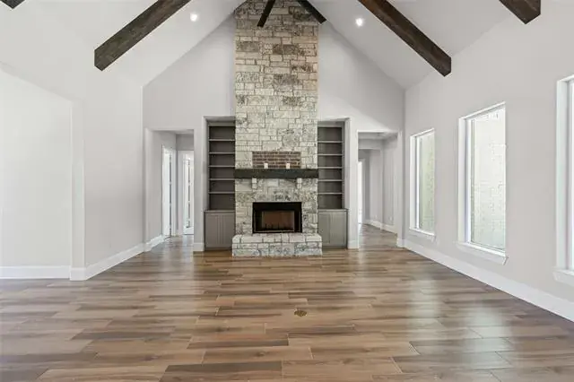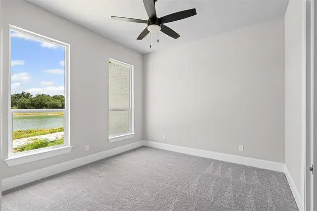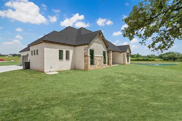BUYERS TAKE ADVANTAGE OF a $20,000 BUILDER INCENTIVE! Waterfront Luxury in Weatherford’s Prestigious Estancia! Welcome to this breathtaking waterfront home. Situated on a beautifully treed, landscaped and sprinklered acre, This turnkey showpiece offers a rare combination of elegance, comfort & modern luxury all with stunning water views & a serene cul de saq location. Step through grand wrought iron double doors into an open, light filled layout featuring soaring ceilings, rich trimwork, and elegant throughout. The expansive living room is anchored by a striking stone fireplace, custom built-ins and a wall of windows that frame the scenic backyard & fill the space with natural light. Designed for everyday living & entertaining the chef’s kitchen boasts quartz countertops, custom cabinetry, KitchenAid appliances, a gas cooktop, double ovens and an oversized island with breakfast bar seating- perfect for hosting gatherings. The private primary suite offers a spa like retreat with a massive walk in shower, luxurious finishes and an oversized custom closet. Secondary bedrooms are split for added privacy, Stately home office with french doors, Energy efficiency was top of mind in construction, with spray foam insulation throughout. Step outside to a large covered patio where you can relax and enjoy peaceful water views, quiet evenings and spectacular Parker County sunsets. All this just minutes from Weatherford’s dining, shopping & schools. This home is the total package!