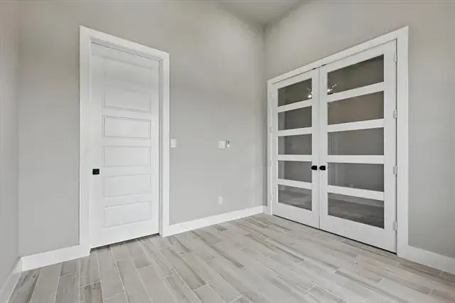 The private primary suite includes a spa-inspired bathroom with dual vanities, a soaking tub, walk-in shower, and a large closet. Step outside to your extended covered patio with a second fireplace, offering year-round comfort and a peaceful view of your acreage.