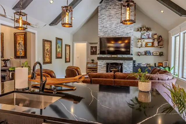 Built-in Features, Decorative Lighting, Double Vanity, Eat-in Kitchen, Flat Screen Wiring, High Speed Internet Available, Kitchen Island, Open Floorplan, Paneling, Pantry, Smart Home System, Vaulted Ceiling(s), Walk- In Closet(s)