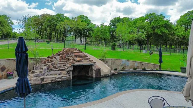 In Ground, Outdoor Pool, Private, Water Feature, Waterfall