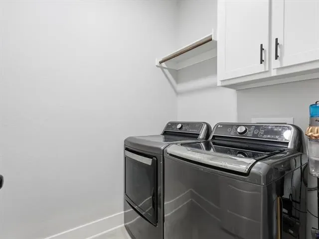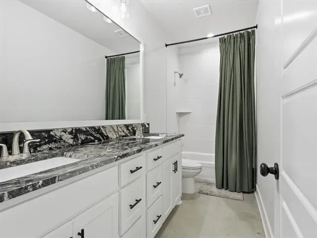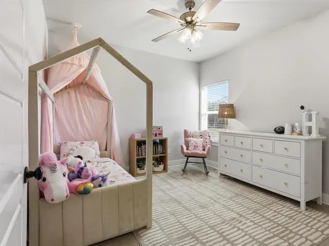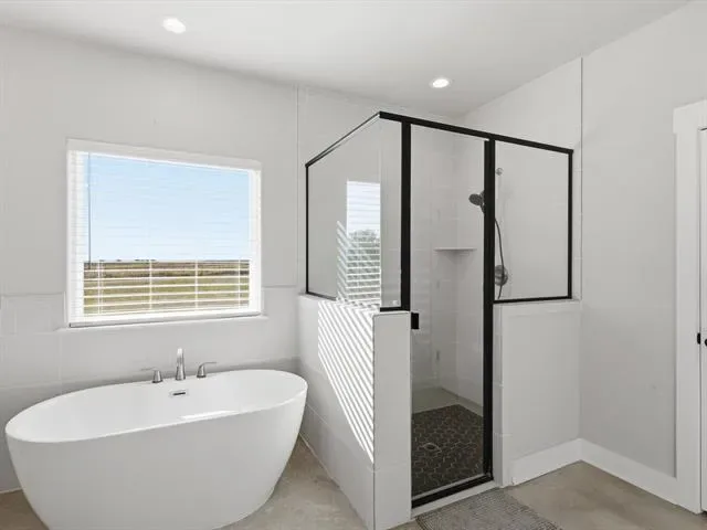 The private primary suite includes two walk-in closets and a spa-like bath with dual sinks, soaking tub, and separate shower. Secondary bedrooms are spacious and comfortable, each with privacy blinds.