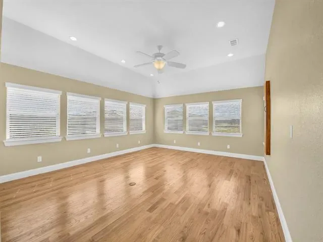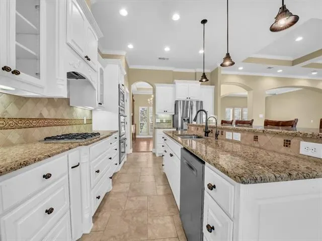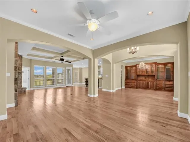 This beautiful one-story residence offers 4 spacious bedrooms, 2.5 bathrooms, and an open inviting floor plan designed for both comfort and flexibility. From the moment you step inside, you will appreciate the seamless flow between living spaces and the warm combination of wood and ceramic tile flooring throughout with no carpet in sight. Two generous living areas and a formal dining room provide space for gatherings, while the large kitchen sits at the heart of the home with abundant counter space, plenty of cabinetry and a cozy breakfast nook overlooking the backyard. The purchase includes stainless steel appliances including refrigerator, oven, microwave, dishwasher and gas range, plus bar stools upholstered with real leather. The primary suite is a relaxing retreat with room for a sitting area or additional furnishings, while three secondary bedrooms offer comfort for family, guests, or a home office. Outside, the screened in back patio provides the perfect spot to unwind year-round with peaceful views of the orchard featuring peach, apricot, plum, apple and pear trees, along with a beautiful pecan tree nearby. The property layout offers room to garden, play, or simply enjoy the fresh air. Set on 1.57 acres, this property delivers both space and serenity. A 55×45 insulated shop with RV hookup and a 20×20 storage area is ideal for hobbyists, travelers, or anyone needing extra storage or workspace, with room for tools, vehicles and equipment. The oversized 3 car garage adds even more versatility for parking and storage. With thoughtful design, timeless charm, and inviting outdoor living spaces, this home is move in ready and waiting for its next owner to fall in love. Schedule your private showing today and see why this one deserves a second look.