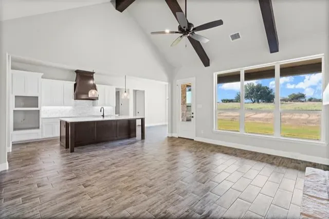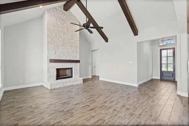 Welcome to this exceptional 2-acre property in Peaster ISD set back from the road in a canopy of mature trees, this thoughtfully designed living space is functional and family friendly with endless possibilities. You will love how seamlessly this home blends modern luxury with timeless style, featuring soaring vaulted ceilings with exposed beams, an inviting floor to ceiling stone fireplace, and abundant natural light throughout. The chef’s kitchen is a showstopper with quartz countertops, designer tile backsplash, staineless steel appliances, a walk-in pantry, and a spacious island perfect for hosting family and friends. The open floor plan flows into a warm and welcoming living area, creating an ideal space for entertaining. A dedicated home office provides privacy for work or study, while the mudroom adds convenience and functionality. The primary suite is a true retreat with a spa-like bath featuring a soaking tub, walk-in shower, and generous closet space and connects to the laundry room for added convenience. Secondary split bedrooms feature walk in closets &' ample space. Foam Insulation, Step outside to enjoy your acreage, where mature trees and wide-open spaces offer endless possibilities for relaxation, play, or future outdoor living additions. Don''t miss out on this wonderful opportunity!