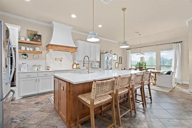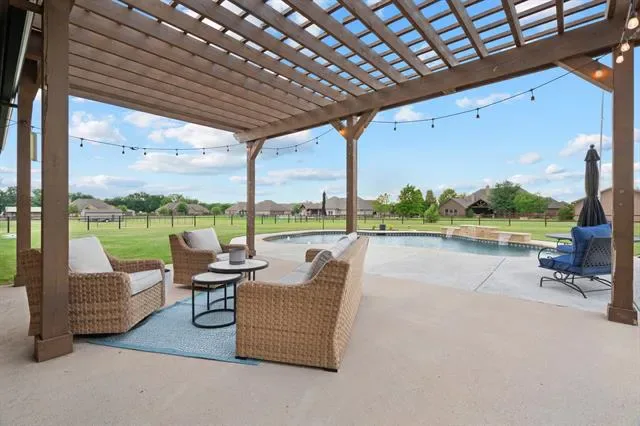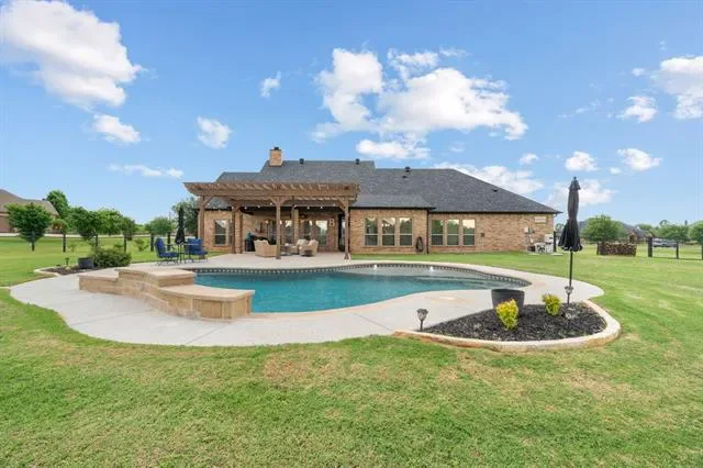 Imagine weekends lounging by your private, sparkling pool (installed 2022), with friends and family gathered under the Texas sun — this is everyday living in this like-new, meticulously maintained 4-bedroom + office, 2.5-bath home in coveted BROCK ISD. Mornings begin in a light-filled kitchen remodeled in 2025 with high-end appliances, a walk-in pantry, designer cabinets and countertops. The split-bedroom layout gives everyone space and privacy while the roomy master suite offers a quiet retreat with space for a cozy sitting area — your evening unwind zone. Work-from-home life feels intentional in the dedicated study framed by new French doors, blending productivity and style. Convenience and peace of mind come standard: quick access to I-20 and all three Brock ISD campuses for easy commutes, an extended driveway for guests, and an oversized 38'' x 25'' garage for hobbies and storage. Recent updates — new roof and gutters (Dec 2023) and fresh exterior paint — mean you’ll spend less time on maintenance and more time living. This home isn’t just a place to live — it’s a backdrop for backyard parties, focused workdays, family milestones, and the effortless daily rhythms of Texas suburban life. Move in and start making memories.