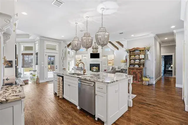 Built-in Features, Cable TV Available, Cathedral Ceiling(s), Chandelier, Decorative Lighting, Double Vanity, Eat-in Kitchen, Flat Screen Wiring, High Speed Internet Available, Kitchen Island, Natural Woodwork, Open Floorplan, Pantry, Vaulted Ceiling(s), Walk- In Closet(s)