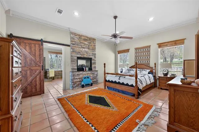 Double Sided, Gas Logs, Gas Starter, Living Room, Master Bedroom, See Through Fireplace, Stone