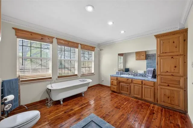 The first floor includes 3 bedrooms &' 2 full baths, including a spacious primary suite with its own double-sided fireplace &' a large bath with soaking tub, oversized open shower, dual-sink vanity, &' large walk-in closet. Upstairs adds a full bath with a claw-foot tub &' additional large shower, an office with a huge closet, &' an open second living area. There is a large amount of attic storage &' potential for future expansion.