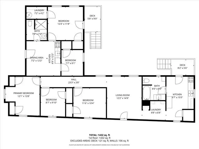 In its current setup, go ahead and count everything twice: two front doors, two back doors, two living areas, two kitchens, two full bathrooms, two laundry areas, all topped off with 5 total bedrooms. This unique arrangement offers incredible flexibility for multigenerational living, rental income, or a spacious single-family residence.
