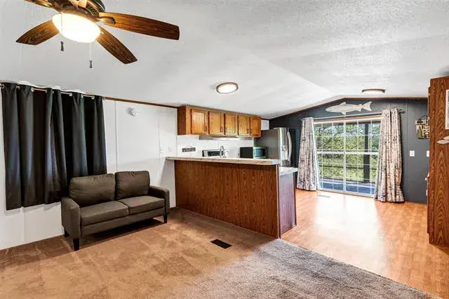 Perched safely above flood level, this well-maintained 2 bedroom, 1 bath manufactured home is structurally engineered on stilts, no flood insurance required. Take in breathtaking views of the flowing river from the spacious wrap around porch, perfect for relaxing with a beverage in hand.