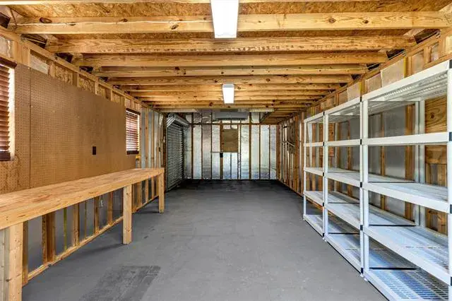 30×40 insulated workshop with electricity, water, and a full bathroom. It is ready to be transformed into a second living space if desired.