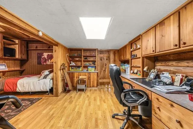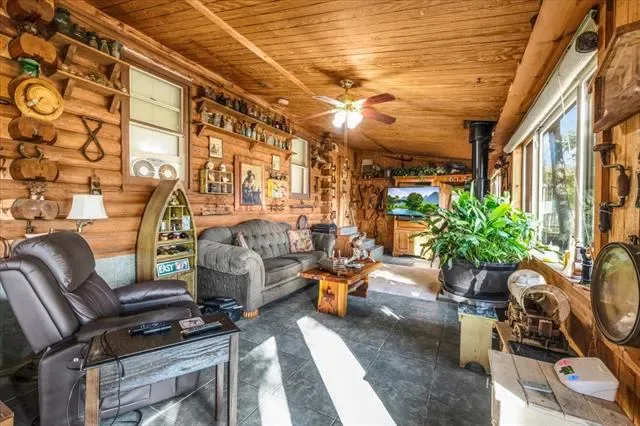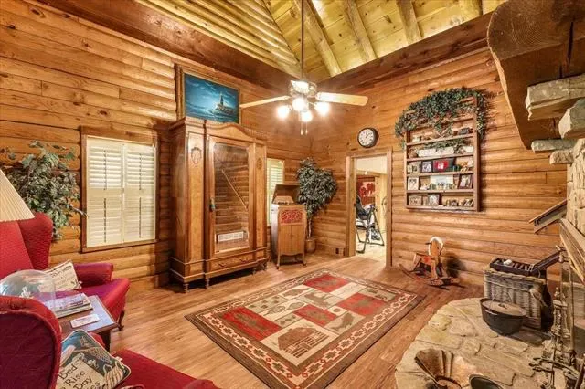Step inside to find warm wood tones, open beams, and an inviting layout that tells a story in every corner. The cabin comes beautifully adorned with antique furnishings, each piece adding to the home’s cozy, storybook charm. The family room area is perfect for gathering by the fireplace, while the large windows frame sweeping views of the river.