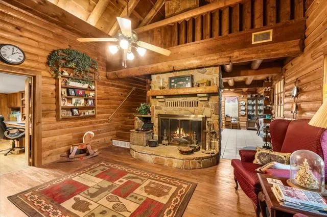Escape to your own private haven in this 4-bedroom, 2-bath log cabin nestled on an acre of peaceful riverfront property. Steeped in character, this home is a rare blend of timeless craftsmanship and tranquil living.