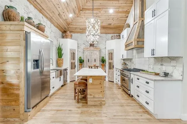 At the center of the home, the chef’s kitchen is both functional and stunning—complete with gas appliances, abundant storage, and a layout designed for effortless entertaining.