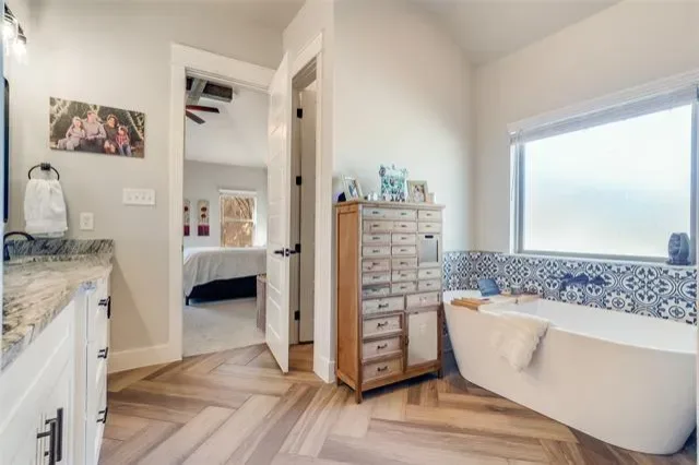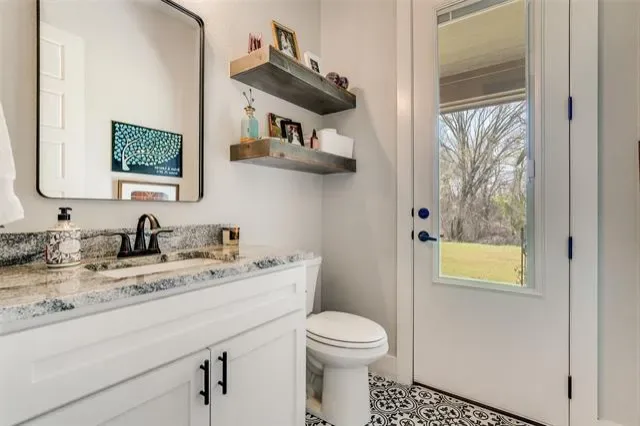 Outdoor features include a covered back patio with convenient access to a half bath, ideal for entertaining or future pool use. The expansive backyard offers room to create your own outdoor space, while a private shallow creek along the property provides a natural buffer for added privacy and a place to enjoy the outdoors.