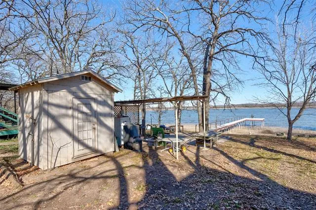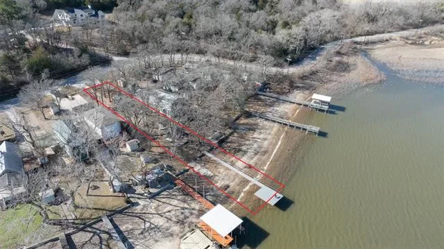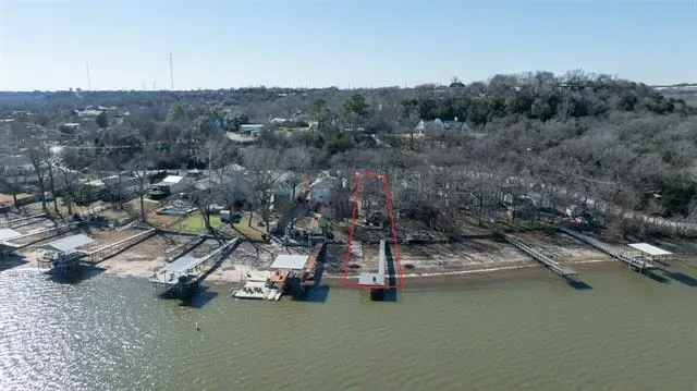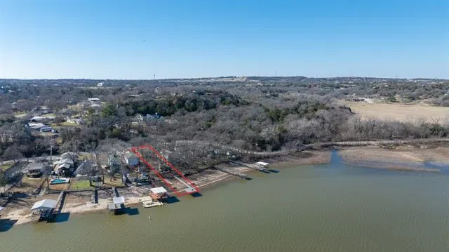 RARE OPPORTUNITY to own a slice of heaven on Lake Weatherford. Build your dream home or simply park your RV for a weekend getaway. RV hookups (electric, water, and sewer), and washer and dryer hookup in storage building. Long dock made of metal frame and solid metal posts and Trex boards for boat-ready enjoyment. This .19 acre lot is a little larger than many Lake Weatherford lots with approx. 33 feet of waterfront acreage. The 35-year City of Weatherford lease renews annually with a payment of $2,385.41 for 2024-2025. Concrete slab and pergola near the lake for BBQ grill and lawn furniture. Lot is located on the open water of the lake with beautiful views of nearby undeveloped nature preserves. Gated and partially fenced with concrete driveway entrance. Perfect as-is for RV use or build your dream home right on the lake!