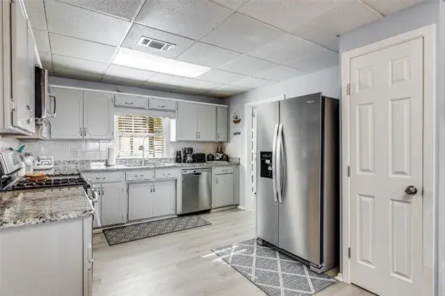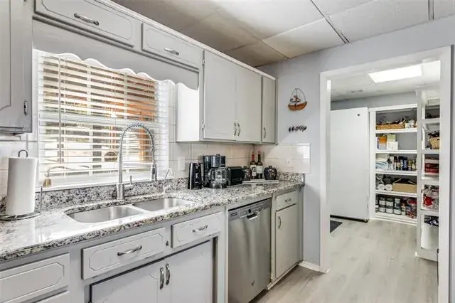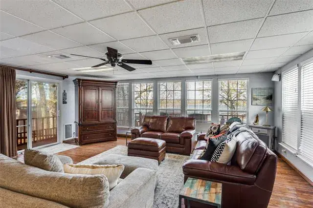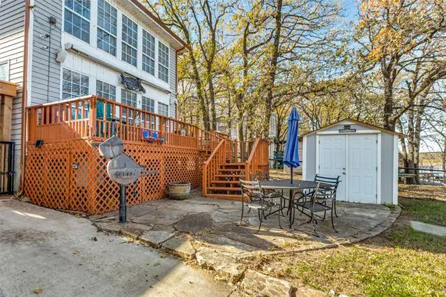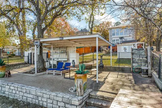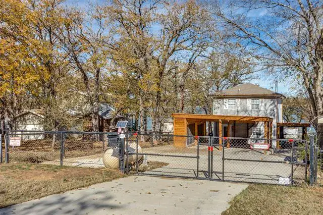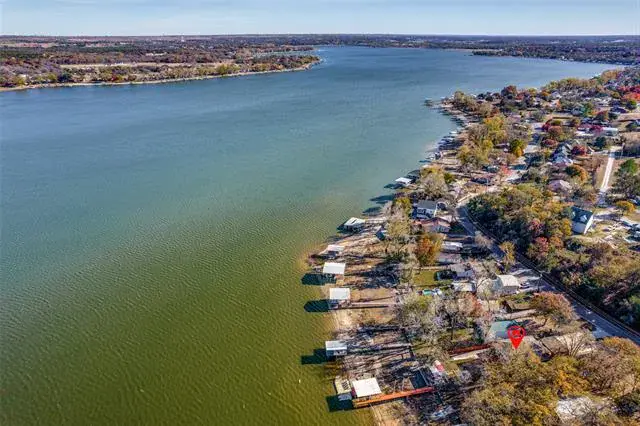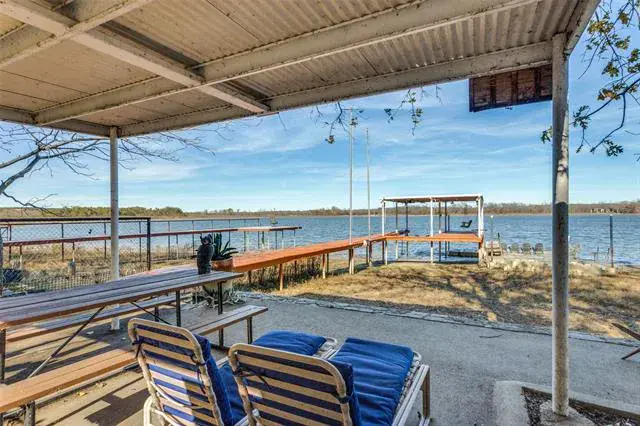 *REMODELED WATER FRONT RETREAT ON LAKE WEATHERFORD* The perfect getaway exists! Extensive covered parking, copper gutters, private boat ramp, permanent & floating dock, boat lift, 2 workshops, and breathtaking views! The kitchen has a gas range oven, granite counters, built-in microwave, large pantry and 9×7 mud room for storage. The formal dining is large enough for family to gather. The living room has wood floors, a freestanding wood stove fireplace and a window wall view of the lake! The full bath down is perfect for guests with a walk in shower and copper sink pedastal vanity. The utility in the full bath services full-size electric washer dryer units. Upstairs find a grand primary suite with tree-top views of Lake Weatherford. Spacious enough for an office or sitting room – with direct access to the full bath with built-in shelving, walk-in shower, rainhead fixture, copper sink vanity and glass block enclosure. The other bedroom is massive and can sleep 6 with 2 queen beds and a twin if maximizing efficiency. Lots of storage throughout. Enjoy the large deck and covered picnic area, sink prep station, outdoor smoker, 2 flag poles and jet ski lift for all of your gatherings. Owners added new flooring and concrete parking areas, Tankless water heater & New appliances. HVAC is serviced regularly. Private Well driven sprinkler system for the garden and city water for drinking.