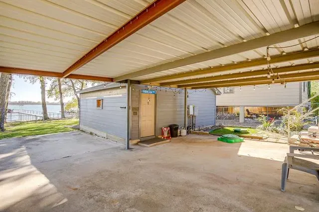 Lake Front Property with a dock! 2 bedroom, 1 bath brick home with updates. This darling lake house with upgrades includes granite tops in the kitchen and hard surface flooring in the living area. Located to the rear is a separate building ready for all of your entertainment needs. This is a great area with a kitchenette and half bath. It also has a split unit for AC and heat. If you did not want to use this for entertainment purposes, it could also house your water toys as there is a garage door for access. The dock has recently been updated and is in great condition.