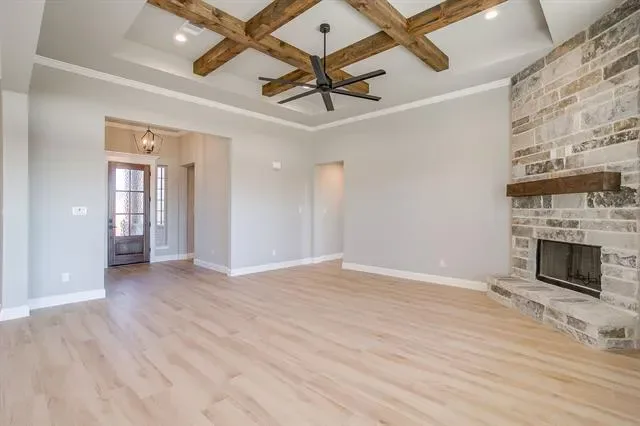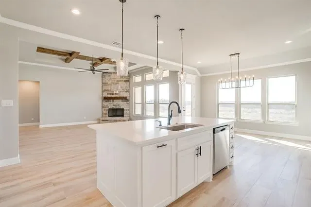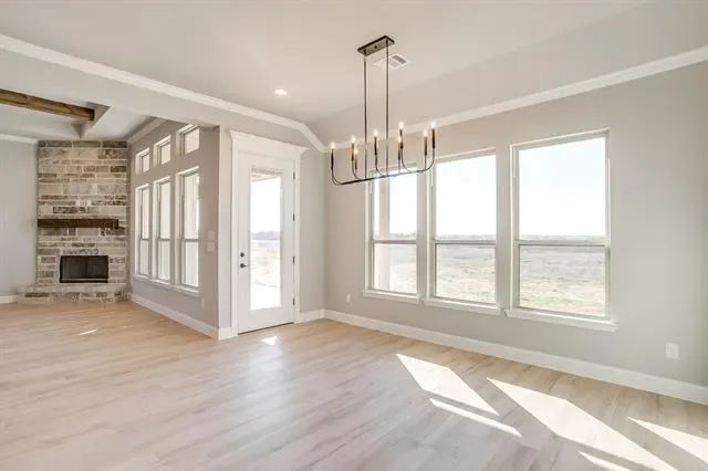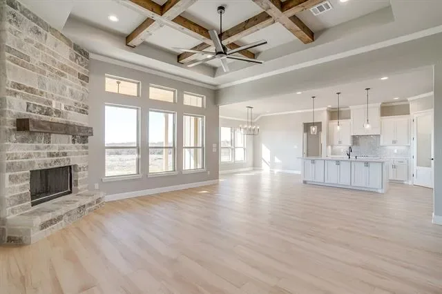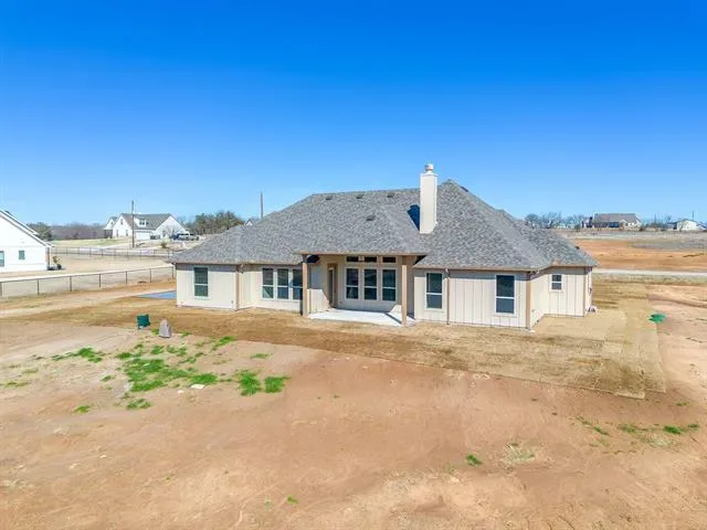Welcome to your BRAND NEW CUSTOM HOME! Featuring 4 BEDROOMS, 3 FULL BATHS, + STUDY, this warm and charming home offers the perfect floor plan! With an inviting curb appeal and warm neutral colors, it sets the tone for modern amenities with a COUNTRY SETTING. Nestled on 2 ACRES, NO HOA, and beautiful views, this beautifully landscaped masterpiece is sure to impress! Covered front patio leads into a beautiful entry with wood look ceramic tile through all the main living spaces. The spacious living room features gorgeous CROSS WOOD BEAM CEILING with warm STONE WOOD BURING FIREPLACE that flows nicely into the OPEN CONCEPT KITCHEN with QUARTZ COUNTERTOPS, stunning tiled backsplash, CUSTOM SOFT CLOSE CABINETS, upgraded appliances, center ISLAND, and EXTRA LARGE WALK-IN PANTRY. Split bedroom plan offers privacy in the SPACIOUS Primary Bedroom Suite with ensuite bath featuring LARGE WALK-IN SHOWER, stand alone TUB, extra LARGE WALK-IN CLOSET, and DUAL VANITIES. Study is offset for privacy from the main space overlooking the front of the home. It is paired next to the 4th bedroom that doubles as a perfect GUEST RETREAT and a stunning full bathroom with FULLY TILED tub shower combo. Two more secondary bedrooms and 3rd Full Bathroom are split from the others providing even more privacy. Large 3 Car Garage with plenty of storage space along with a COVERED BACK PATIO with VIEWS of the TEXAS COUNTRYSIDE for miles! Come take a look and relax knowing you found the perfect place to call home!