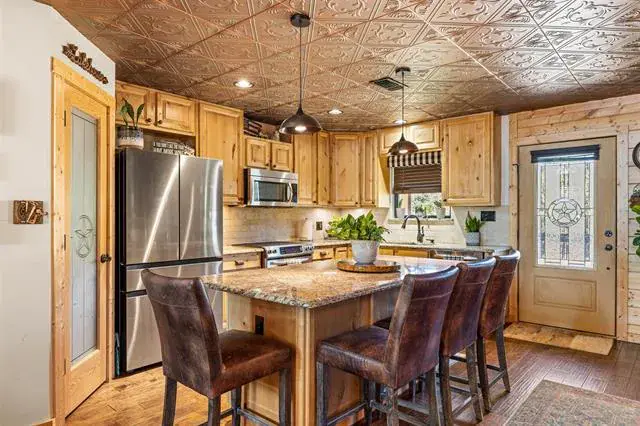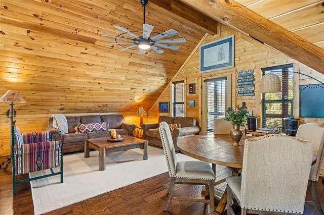 This stunning 2-bedroom, 2-living area home located on Lake Weatherford is designed for comfort and adventure, offering timeless rustic charm paired with modern conveniences. You’ll be captivated by the homes inviting curb appeal, complete with a spacious front porch perfect for morning coffee or evening relaxation. This location also offers easy access to major freeways, restaurants, shopping, with Fort Worth and surrounding areas.