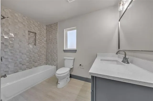 The interior features an open 4-bedroom, 3-bathroom floor plan with new sheetrock, neutral paint, and durable flooring throughout. The kitchen is equipped with new appliances and modern fixtures. Energy-efficient upgrades include new windows and a complete HVAC system, including all ductwork.