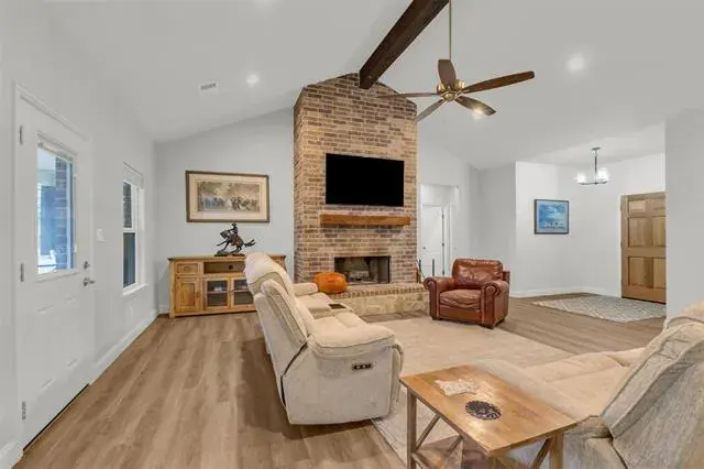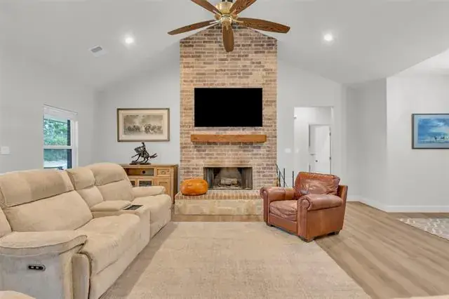 Welcome to your dream home on just over 2 acres in the heart of Weatherford, where modern craftsmanship meets Texas charm! This stunning 2022-built residence sprawls across over 2,600 square feet of thoughtfully designed living space, offering 4 bedrooms and 2.5 baths. Step inside and prepare to be captivated by the masterful open floor plan, where your eyes are immediately drawn to the wood-burning brick hearth that anchors the generous living area. The kitchen overlooks the enormous living space while serving as the heart of the home with amazing custom cabinetry, double ovens, an electric cooktop, a pantry, and custom leathered granite countertops, with abundant cabinet and counter space. The primary bedroom offers a true retreat, leading into an exceptional oversized en-suite bath with dual vanities, an oversized shower with dual heads, a separate deep soaking tub, and an oversized walk-in closet. Outside, the generous lot reveals a backyard oasis shaded by large mature oak trees. The covered patio invites year-round outdoor living, while the park-like setting provides endless possibilities for play, gardening, or relaxation. Conveniently located near Springtown High School and the Springtown Skatepark, this quality-built home delivers exceptional value in a welcoming community. Schedule your tour today and discover why this extraordinary property deserves to be called your next home!…