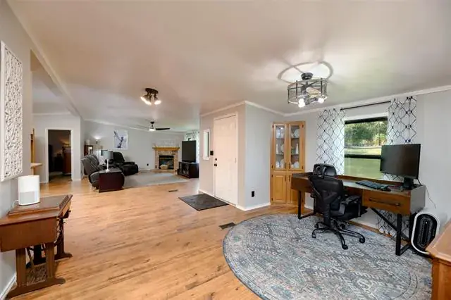 Stop searching and start living! This beautifully refreshed 4-bedroom, 2-bath, with office, home offers the space your family has been looking for, both inside and out. Set on over a half-acre of land with its own well and septic, this property combines a smart, functional layout with a massive, 8 ft high fenced yard. The heart of the home is the bright, eat-in kitchen, which flows directly into a cozy living area with a fireplace, ideal for gatherings. Recent updates include new HVAC, 72 piers around the home 4×4 wide and double strapped, stone entrance, concrete sidewalk, siding and insulation, windows, new carpet, new plumbing changed over to pex, under pinning, new under belly with climate control, metal roof, master bath remodel, water tank, sprinkler system, all new duct work, big screened in back porch with doggy doors for your fur babies, large backyard for entertaining with a nice size storage shed- shop with electric. 2 car carport on concrete with storage or small shop. well house with electric. The split-bedroom design provides maximum privacy for the primary suite, while the large lot offers endless possibilities for outdoor fun, garden or pets. Enjoy the peace of country-style living with easy access to schools and amenities. outside city limits.