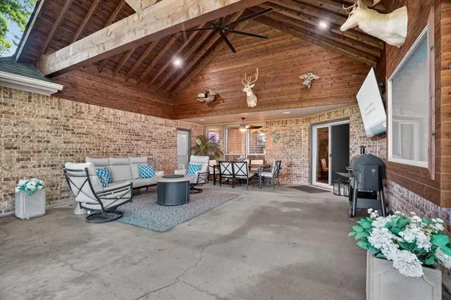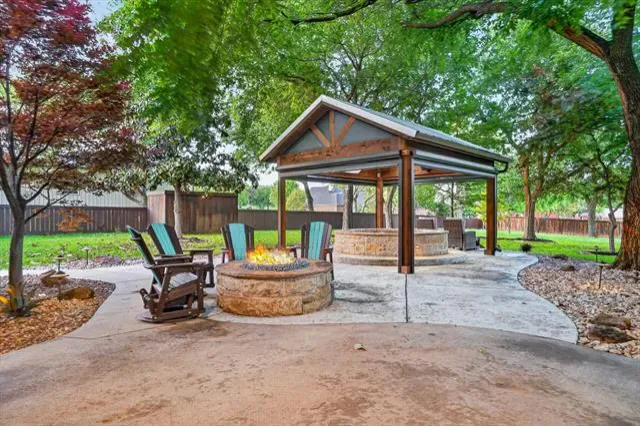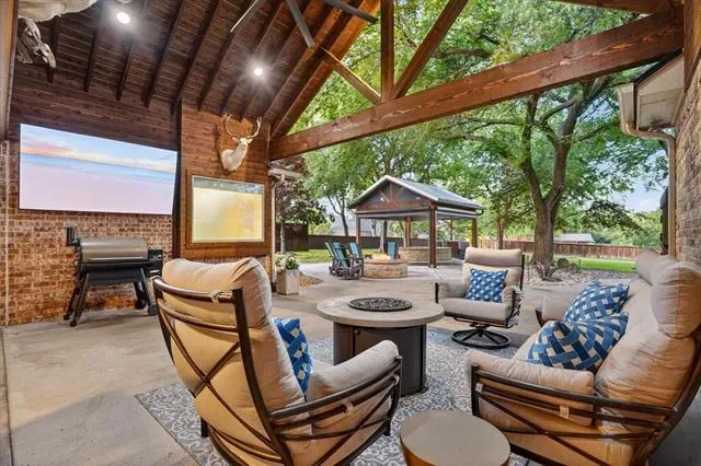 Covered Patio/Porch, Fire Pit, Rain Gutters, Lighting, Outdoor Grill, Outdoor Kitchen, Outdoor Living Center