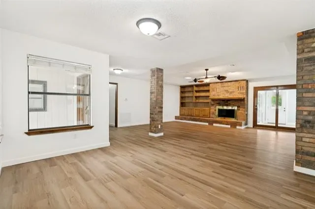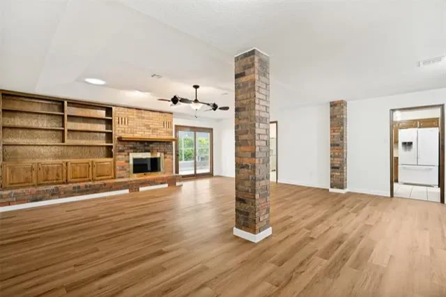 Blower Fan, Brick, Circulating, Living Room, Raised Hearth, Wood Burning