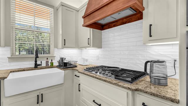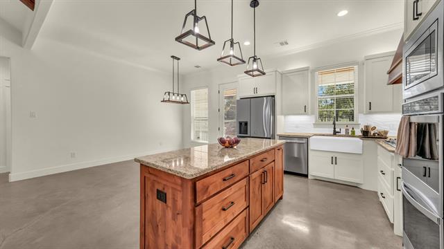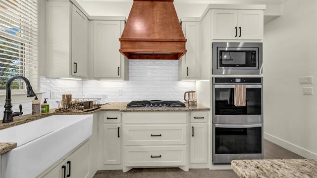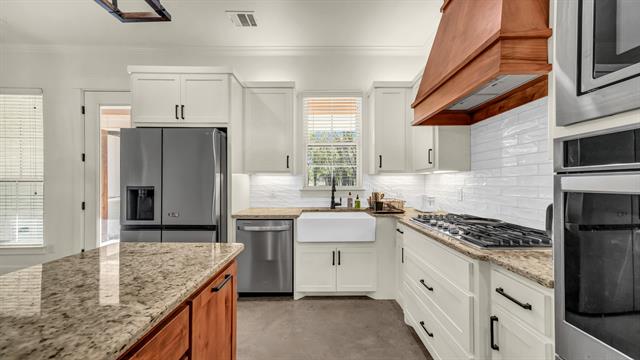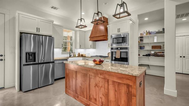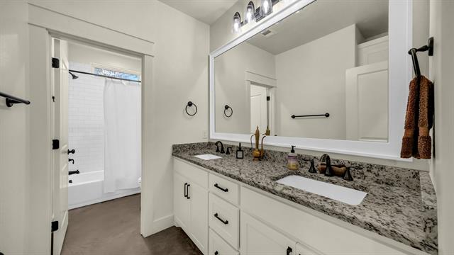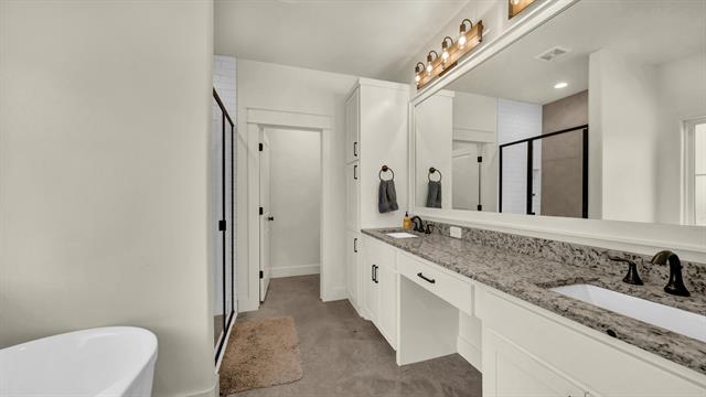 The kitchen boasts a large granite island, stainless steel appliances, a walk-in pantry, and a gas stove—perfect for cooking enthusiasts. The secondary bathroom includes dual sinks and a tub-shower combo, while the primary suite offers a freestanding soaking tub, separate shower, double vanities, and a walk-in closet.