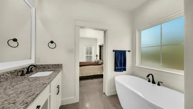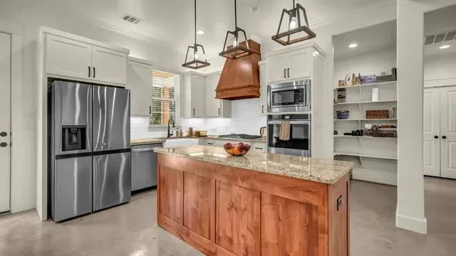 The kitchen boasts a large granite island, stainless steel appliances, a walk-in pantry, and a gas stove—perfect for cooking enthusiasts. The secondary bathroom includes dual sinks and a tub-shower combo, while the primary suite offers a freestanding soaking tub, separate shower, double vanities, and a walk-in closet.