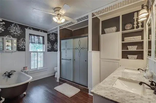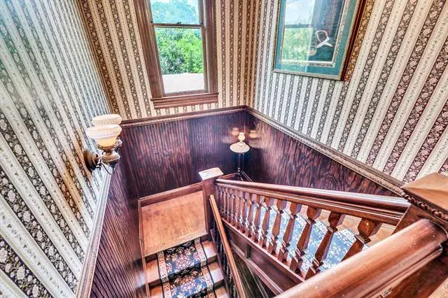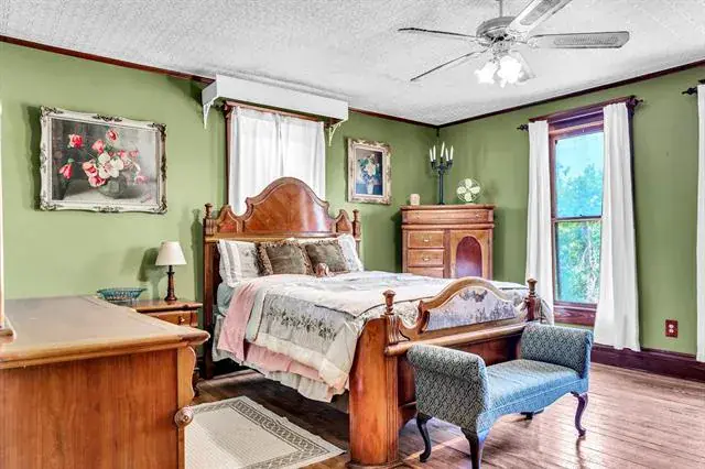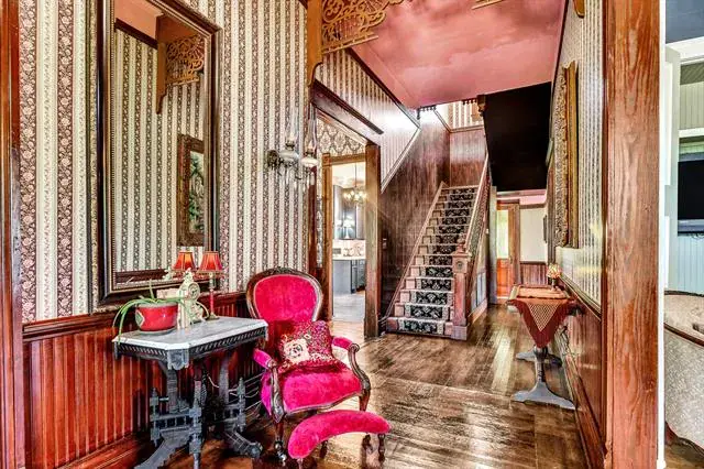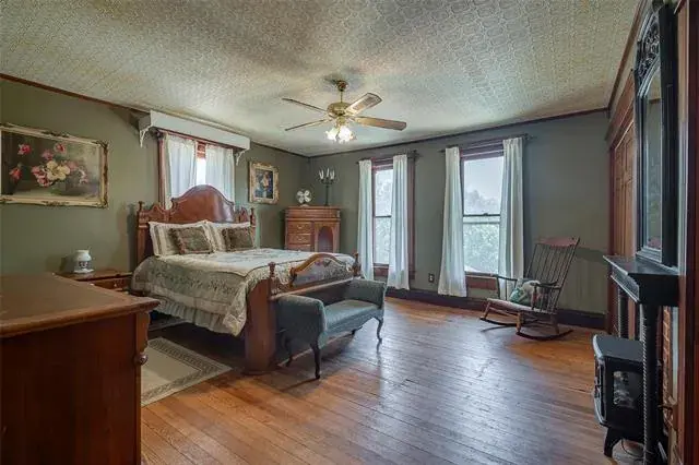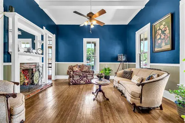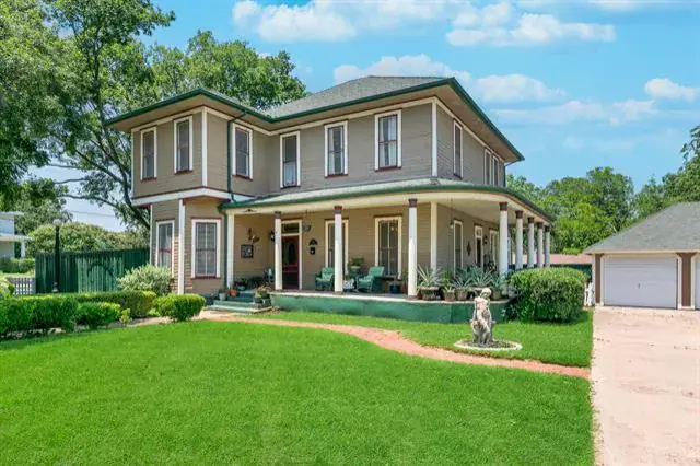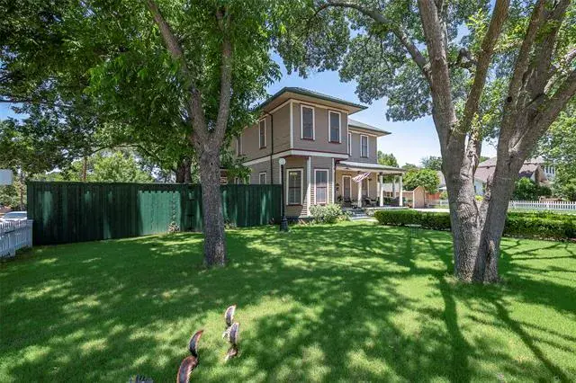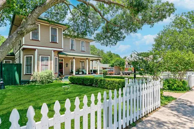 Charming Victorian Painted Lady built in 1896, the Jackley Home sits on a corner lot in the historic district. Only 1 block from Cherry Park, a few blocks from Chandor Gardens, and walking distance to the town square and courthouse with local food and shopping. Historical charm of gingerbread trim, 12ft high ceilings, some original light fixtures & 2 clawfoot tubs meet with modern amenities, such as 2 central AC units (2021, 1 up & 1 down), whole house water filtration, & whole house Generac generator. 2025 updates include new kitchen floors, dishwasher, paint & more! Rare in this era of home, all bedrooms even have a closet! 2 car garage with workshop & electric, attached shed, and oversized concrete driveway for babying your cars, boat, etc. Rooms inside are spacious and multifunctional. Enjoy a great view of Heritage Park fireworks on your wraparound porch, surrounded by Tiff Tuff grass, Pecan, Oak & Redbud trees, enclosed by a new white picket fence and charming outdoor lights. The side and back yards are enclosed with a new 8′ privacy fence. Original 1800’s survey & title abstracts of more than 100 yrs. Many updates done on foundation, plumbing, etc. Custom fitted Christmas lights new in 2024. Mineral rights available!