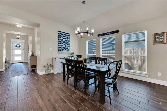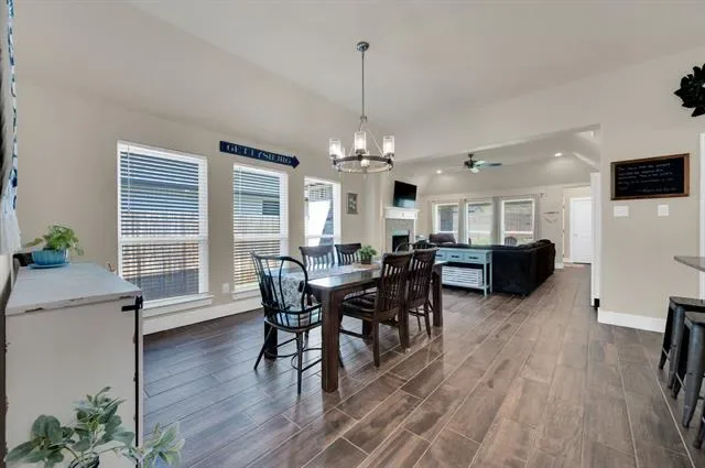 Tucked away in the desirable Parkers Draw subdivision, this beautifully designed 4-bedroom, 2-bath home offers the privacy of a peaceful neighborhood with the convenience of walking distance to Wright Elementary and Hall Middle School — and just minutes from I-20. Step inside to an inviting open-concept layout featuring 10-foot ceilings, designer lighting, and wood-look tile flowing throughout the main living areas. The spacious living room is anchored by a cozy wood-burning corner fireplace — perfect for relaxing evenings at home. The well-appointed kitchen boasts granite countertops, a large center island with breakfast bar, and a walk-in pantry, all opening seamlessly to the dining area for effortless everyday living and entertaining. Retreat to the generous primary suite, complete with an oversized walk-in closet and a spa-inspired bath offering dual vanities, a garden tub, and separate shower. Three additional bedrooms provide comfortable space for family, guests, or a home office. A dedicated utility room and entry foyer with gallery add thoughtful finishing touches throughout. Outside, enjoy the covered patio and a fully fenced yard with a sprinkler system. The attached 2-car garage and rain gutters round out the package. Don''t miss your chance to own a quality home in one of Weatherford''s most sought-after communities!