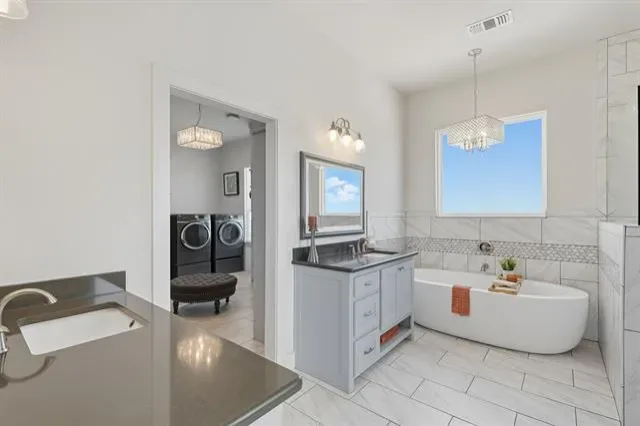 Cathedral Ceiling(s), Chandelier, Decorative Lighting, Double Vanity, Flat Screen Wiring, Granite Counters, High Speed Internet Available, Kitchen Island, Open Floorplan, Pantry, Vaulted Ceiling(s), Walk- In Closet(s)
