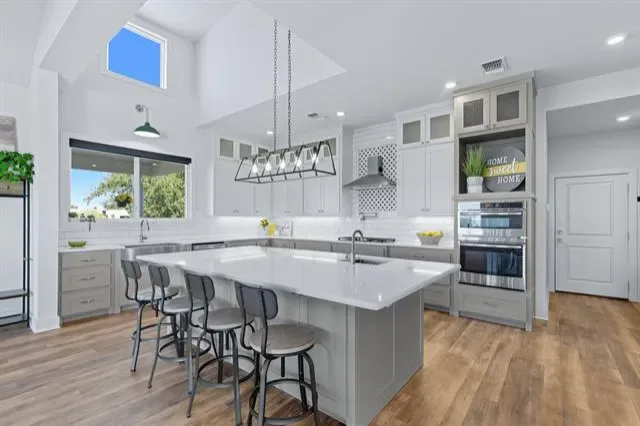 Set high on 2 acres, this stunning modern farmhouse was designed to capture the rolling Parker County countryside, it’s peaceful, elevated, and unforgettable. Upon entry into the home, you’re immediately captivated by soaring cathedral ceilings adorned with wood beams, massive windows, and French doors that dissolve the line between indoors and out. The living room flows into the open dining and on into the gorgeous chef’s kitchen. Let your culinary skills come to life with exceptional prep space on the expansive island, 2 sinks, a gas cooktop, and incredible cabinetry. Stroll down the light filled hallway to the primary suite, a sanctuary in its own, with private patio access, a spa inspired bath featuring a soaking tub, rain shower, and a dream-worthy custom closet with attached laundry. Two wonderful guest rooms, a large secondary full bath, and a pool bath complete the home. Outdoors is where life here truly shines, whether you’re hosting under the expansive covered porch, lounging by the sparkling pool and spa, or soaking in the views that stretch endlessly across the horizon where you can even see the distant Baker Hotel. The property also features a charming 1-bed, 1-bath guest quarters with a full kitchen and an attached 30×25 insulated and air conditioned shop. A separate 30×50 workshop currently serves as a batting cage, while beyond it, a private baseball field awaits. Whether you keep it as a field of dreams or transform it into your own haven, the possibilities are limitless. No HOA. Water well. Incredible location with easy access to major thoroughfares and minutes from Downtown Weatherford, shopping, dining, and entertainment.