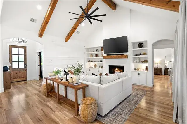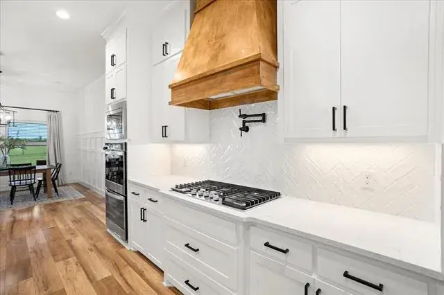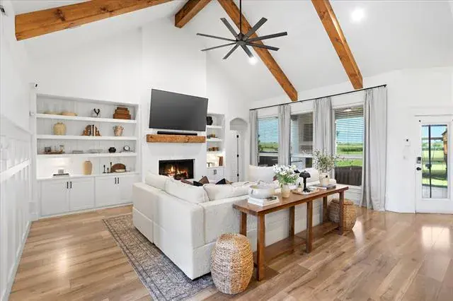Welcome to 1074 Pioneer Crossing in beautiful Weatherford, Texas! This charming single-family residence offers an inviting blend of modern elegance and cozy comfort. As you enter, you''ll be greeted by a spacious living area with stunning custom beams and accent walls that create a warm and inviting atmosphere. The heart of the home features a gourmet kitchen, complete with a quartz waterfall island, double ovens, and custom cabinetry—perfect for culinary enthusiasts.