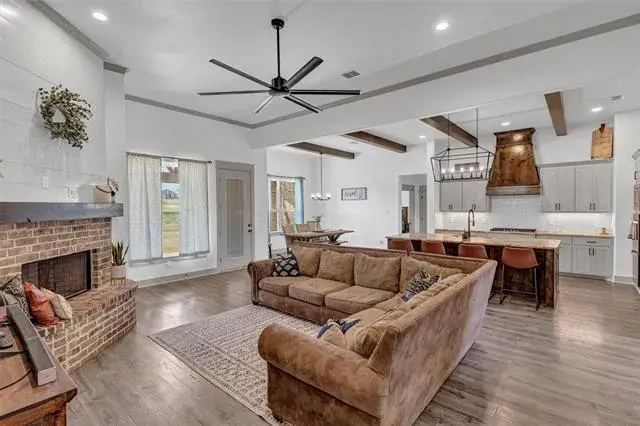 Located in the desirable Pioneer Crossing subdivision in Weatherford, this beautifully built 2021 home offers modern comfort on a spacious 2-acre lot. With 4 bedrooms, 3 full baths, and over 2,500 square feet, the layout provides both functionality and room to breathe. The open living design is ideal for everyday living and entertaining, while the split-bedroom arrangement gives the primary suite added privacy. The primary bath features dual sinks, a walk-in closet, and a separate shower. Ceiling fans throughout enhance comfort. The home also boasts many upgrades, including spray foam insulation for energy efficiency and year-round comfort, 250 gallon buried propane tank for filling twice a year, and gas tankless water heaters. Bring your vehicles, hobbies, or toys—this property includes an attached 3-car garage. Plenty of space outdoors to enjoy the wide-open Texas sky, add a shop, or simply relax and watch the sunset. No HOA and horses are permitted.