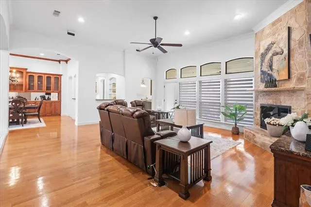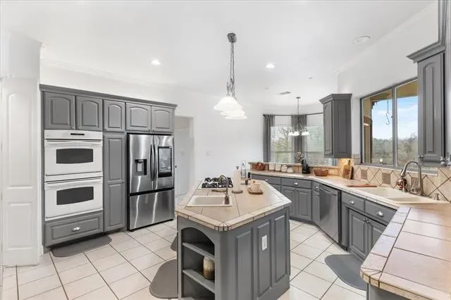 Welcome to this Spanish Style Estate sitting on 5 acres, guest house, workshop, barn, pond and a private gated entrance welcomes you to a long driveway leading to the residence, offering both privacy and an impressive arrival experience. Discover this exceptional gated estate nestled on five beautifully fenced acres in Weatherford, offering the perfect balance of privacy, space, and functionality. The main residence features five bedrooms, four bathrooms and three car garage, thoughtfully designed with two spacious living areas and two dining areas ideal for both everyday living and entertaining. The property also includes a separate guest house approximately 736 sqft with two bedrooms, one bath, and an upstairs loft, providing comfortable accommodations for guests or extended family.The acreage is fully fenced and cross fenced, and includes a large workshop, barn previously used for horse stalls, making it well suited for equestrian use, hobbies, or additional storage. A pond located toward the back of the property enhances the peaceful country setting, while the covered patio with outdoor fireplace and ceiling fan creates the perfect space to relax and enjoy the surrounding views of your private acreage.